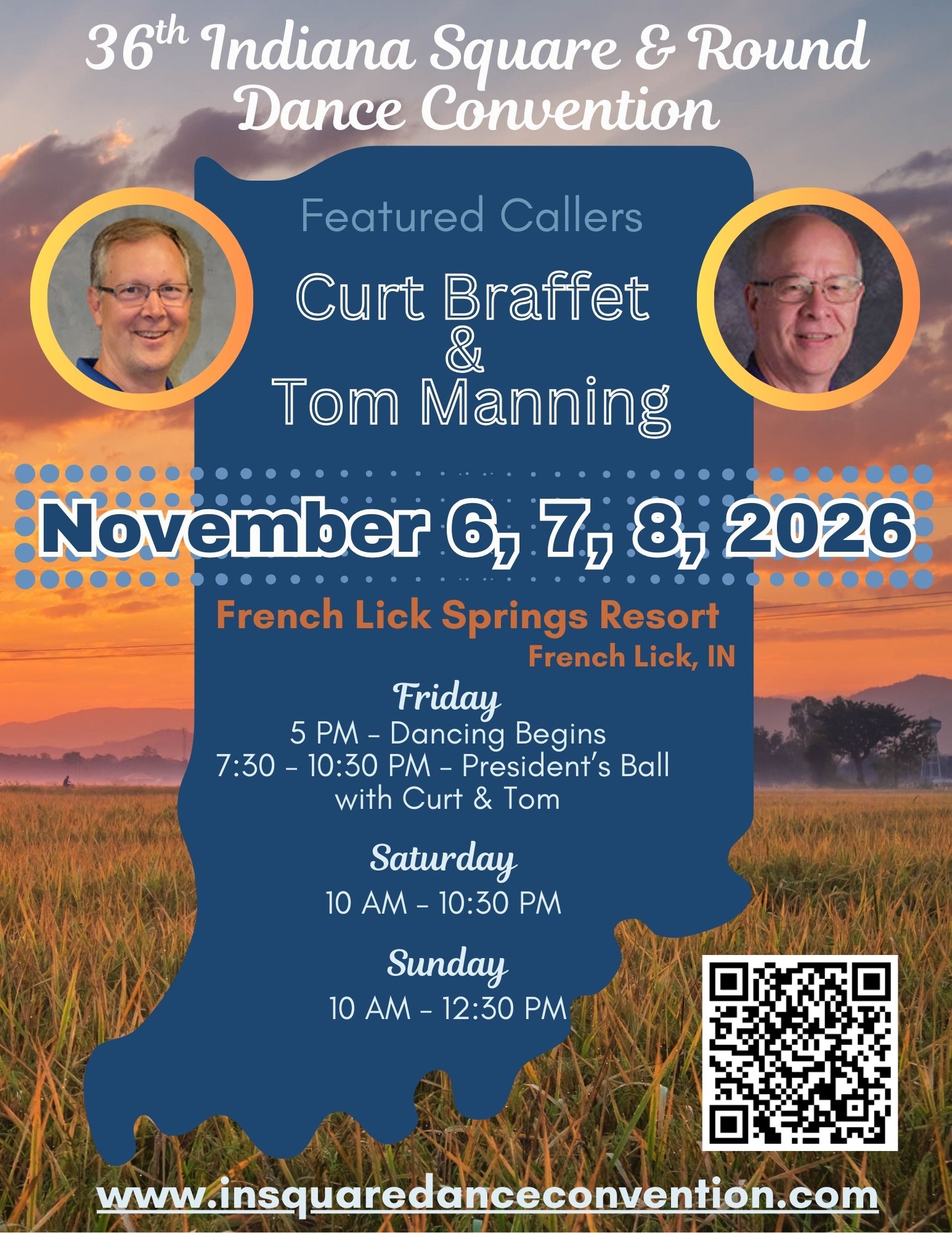 Please join us for the 2026 Indiana Square & Round Convention scheduled for November 7, 8, 9 in French Lick, IN.